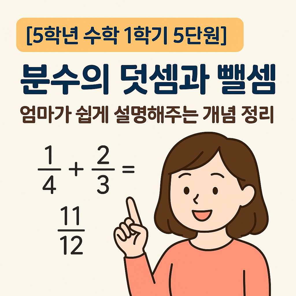 📘 [5학년 수학 1학기 5단원] 분수의 덧셈과 뺄셈 – 엄마가 쉽게 설명해주는 개념 정리